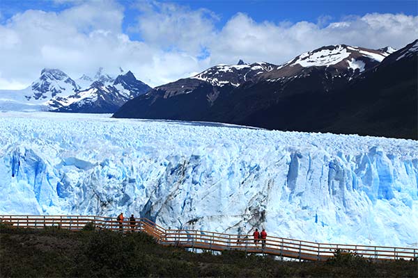 Calafate, Argentina: Perito Moreno Glacier Exploration. Today you will start your journey from El Calafate to the Perito Moreno Glacier and encounter many pleasant surprises along the way. In the outskirts of El Calafate, you can see the Argentine Lake with its round bay populated with an important variety of birds such as the black necked swan, flamenco, duck steam, gallareta, and cauquén. The presence of coirones gives frame to the typical yellow of the countryside. Once entering the Perito Moreno Glacier National Park, you can observe the vibrant arboreal vegetation that is formed by nires, sour cherries, lengas, and colorful wild flowers. In front of the Glacier, everything is majestic. You can go around the footbridges to catch different views of the Glacier.