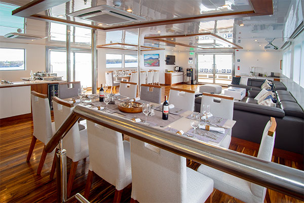 The yacht features both indoor and outdoor social areas designed for comfort and connection, ideal for small groups or couples seeking an intimate yet spacious atmosphere. Gourmet meals, daily excursions led by expert naturalist guides, and seamless hospitality come together to make M/Y Infinity a truly exceptional way to explore the Galapagos Islands in style.