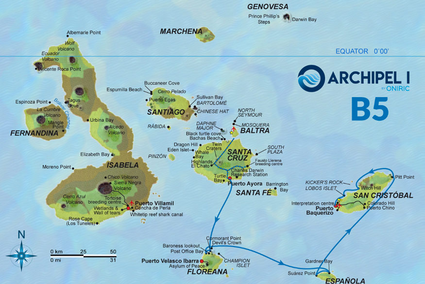 The M/C Archipel I Itinerary B5 offers a classic 4-night southeastern route through the oldest islands of the Galapagos, where evolution has had ample time to shape a variety of unique subspecies. Read More