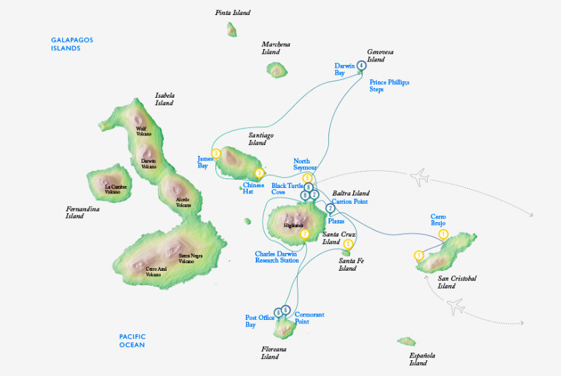 In summary, your Galapagos Cruise will take you on a journey visiting (*):
