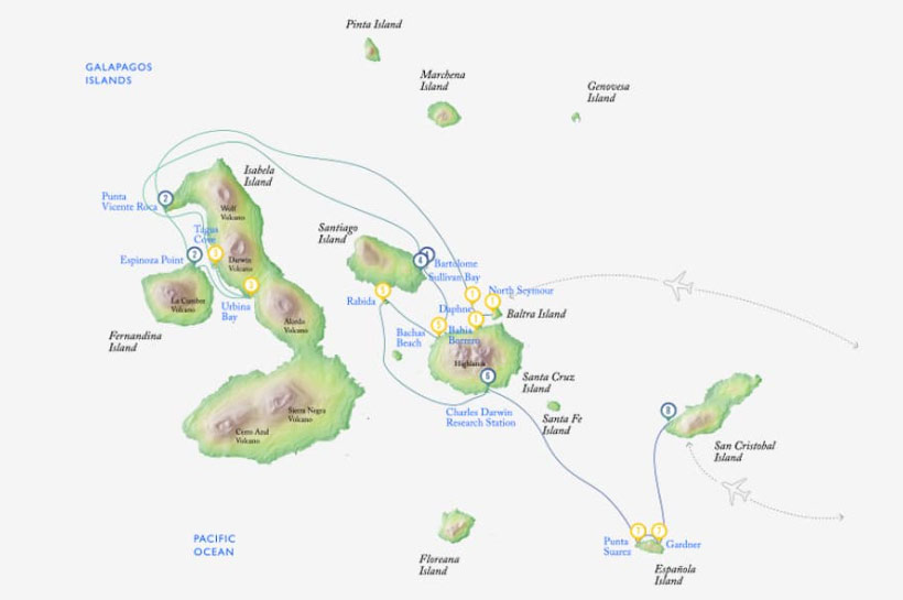 In summary, your Galapagos Cruise will take you on a journey visiting (*):