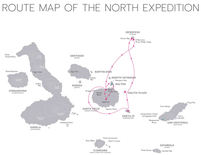 In summary, your Galapagos Cruise will take you on a journey visiting (*):