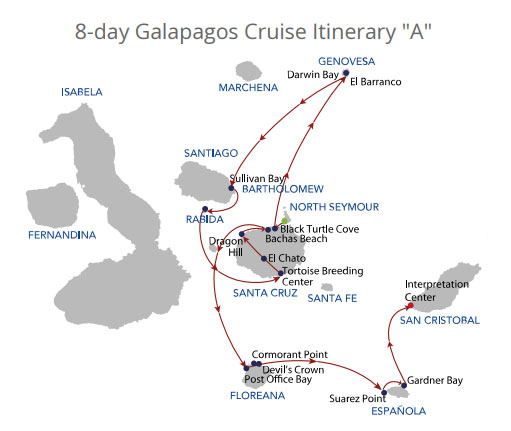 In summary, your Galapagos Cruise will take you on a journey visiting (*):