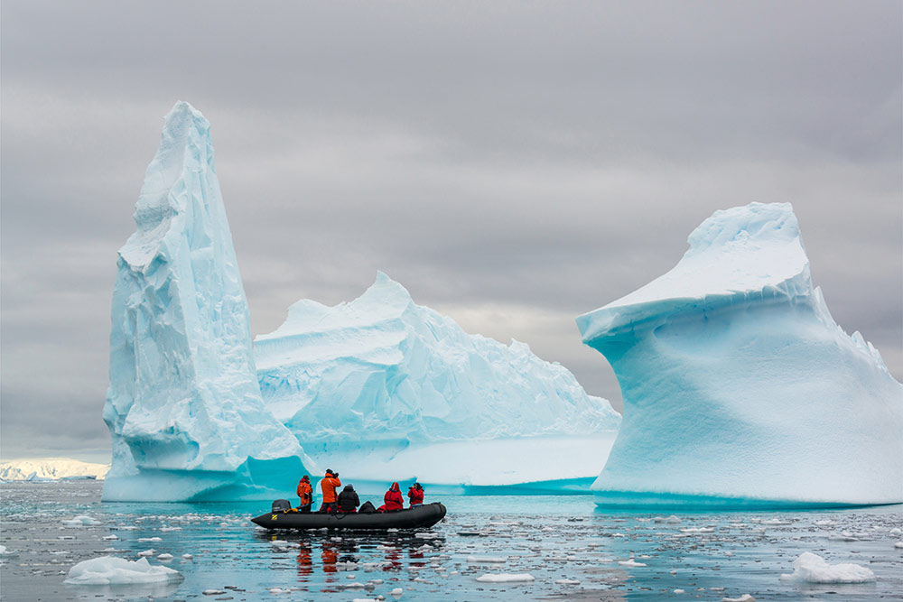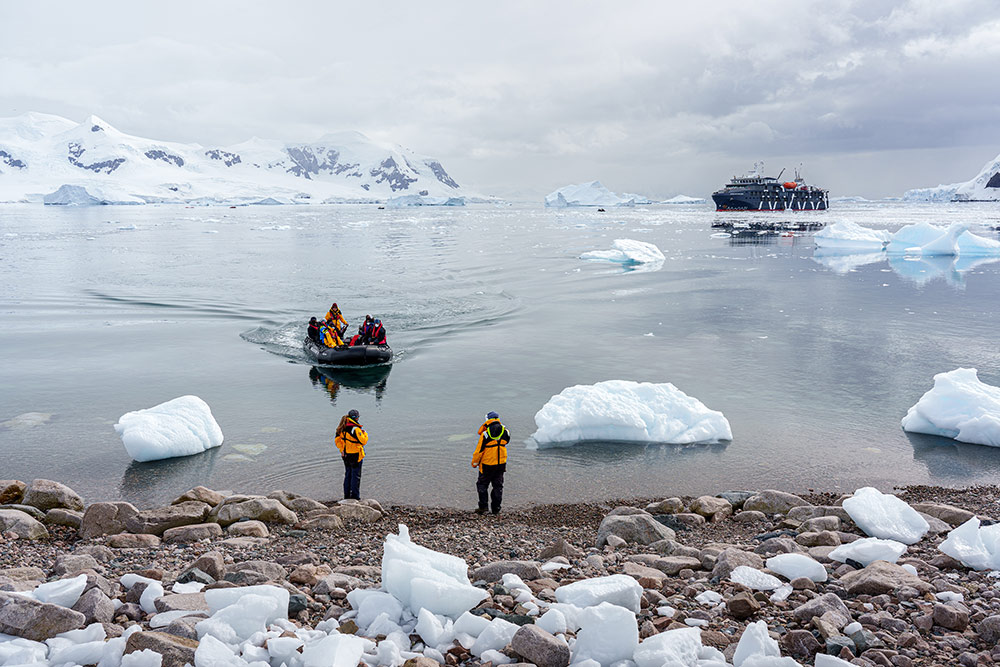 Exploring Antarctica. Cruise between the South Shetland Islands and the western coast of the Antarctic Peninsula, sailing through ice-filled fjords and among spectacular icebergs while enjoying the company of seabirds, penguins, seals, and whales. Each day, disembark by Zodiac to explore the pristine landscapes alongside expert polar guides. On board, attend engaging educational presentations and take in breathtaking views from the lounge as you share the day’s adventures with fellow travelers.
