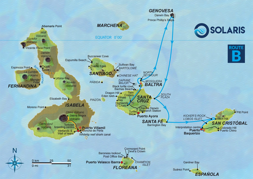 In summary, your Galapagos Cruise will take you on a journey visiting (*):