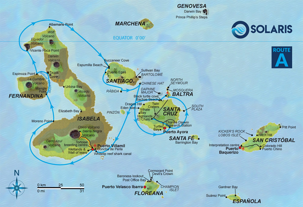 In summary, your Galapagos Cruise will take you on a journey visiting (*):