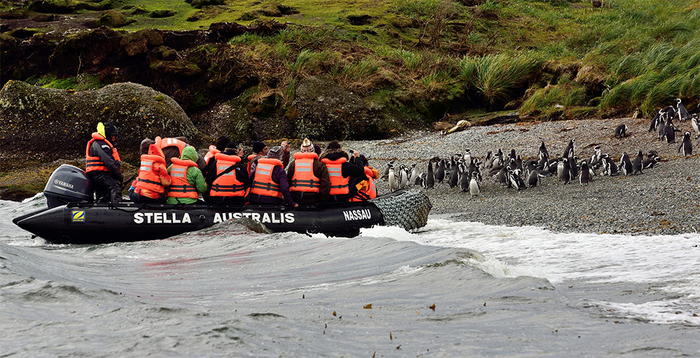 Later, we will visit the Tuckers Islets, where you can see Magellanic penguins and cormorants from the Zodiacs. Due to the penguins’ migratory cycle, in September and April this excursion is replaced with a short walk to a glacier in the nearby, stunning Brookes Bay.