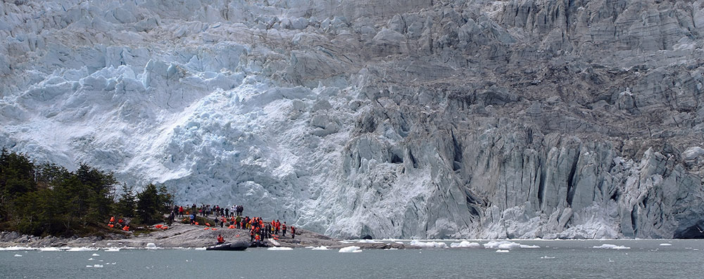 In the morning, we will navigate the Cockburn Channel to enter Agostini Sound, where we can admire glaciers descending from the heart of the Darwin Mountain Range, some reaching all the way to the sea. After breakfast, we will disembark via Zodiac boats for a walk around a lagoon formed by the melting of the Aguila Glacier.