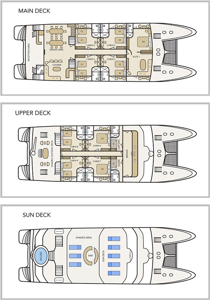 Step aboard the Treasure of Galapagos, a first-class motor catamaran crafted for travelers who value both comfort and adventure. Designed to navigate the iconic Galapagos Islands in style, this spacious vessel offers an intimate and exclusive experience with just a handful of guests on board. Read More